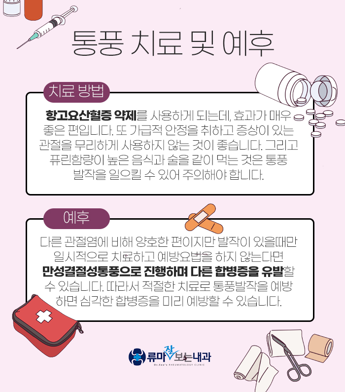 또 예후는 다른 관절염과 비교했을 때 양호한 편입니다. 그러나 증상이 있을 때만 대구통풍의원에서 치료를 받고 평소 잘 관리를 하지 않는다면 만성 결절성 통풍으로 진행되면서 여러 가지 문제를 일으키게 된답니다. 그런 만큼 통풍 때문에 고민을 하고 계신다면 대구통풍의원에서 치료 및 관리를 하는데 도움을 받아보시는 게 좋습니다.