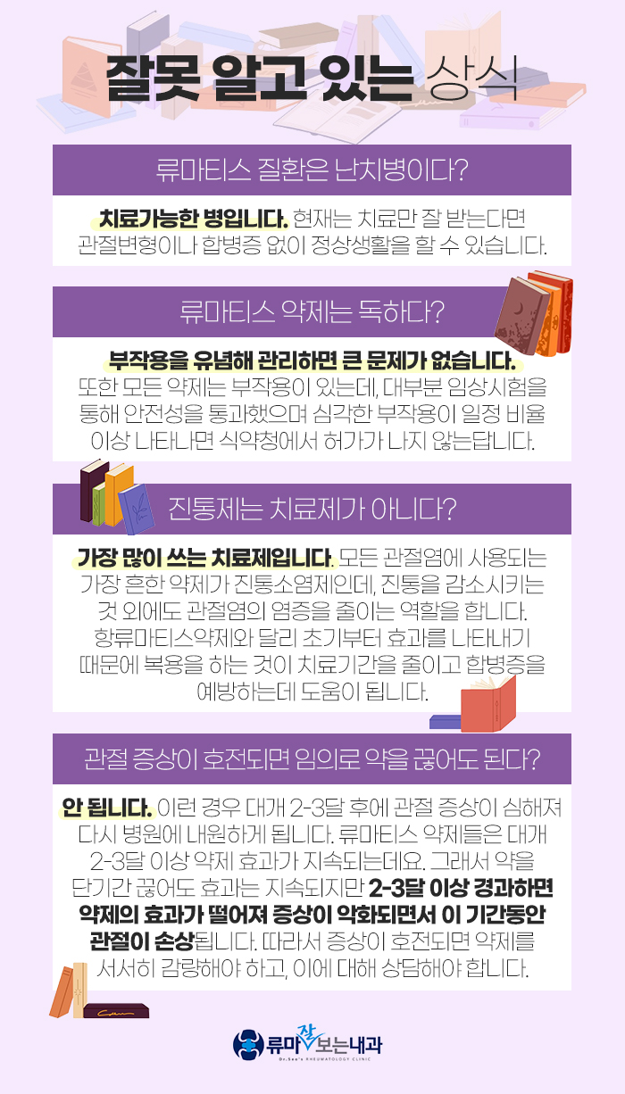 또 대구관절염치료의원에서 진단한 결과 류마티스 관절염이 맞다면 비스테로이드성 항염제와 스테로이드, 항류마티스제, 생물학적 제재를 통해서 도움을 받아보실 수 있답니다.